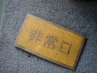 非常口の看板が床に落ちていました。 |