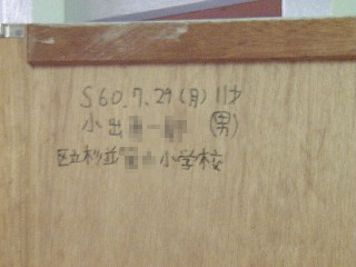 収納の扉にあるラクガキです。 思い出の一コマとして長く残っていくことでしょう。 |
