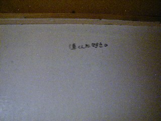 ベッドの壁面にかかれたラクガキです。 甘酸っぱい恋心・・・(;´Д`) |
